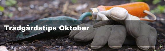 Vid denna tid på året finns mängder av bär i vackra färger, som harmonierar med de flammande höstlöven, vilket bidrar till att göra de nödvändiga trädgårdsarbetena till ett nöje. Vädret kan fortfarande vara angenämt varmt och soligt, men vi kan även vänta oss de första frostnätterna denna månad. I princip alla växter som planterats i krukor eller lådor måste skyddas eller tas inomhus innan det blir vinter.
