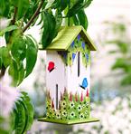 Unna fjärilarna en lite ostörd lya att vila i. Häng detta vackert målade fjärilshus i trä på ett skyddat avsnitt i trädgården. Fjärilarna kommer att ta sig in genom de vertikalt placerade springorna. Mått: 21,5 x 10 x 10 cm.
