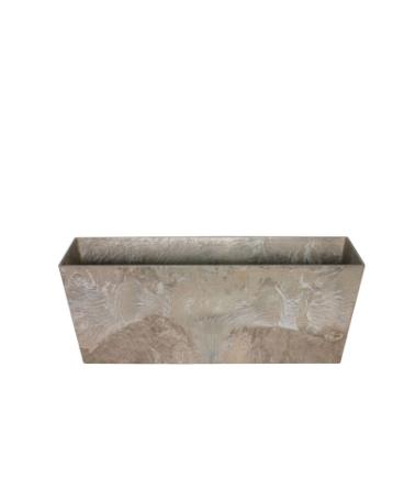 Balkonglådan Artstone Ella har en lyxig marmorlook. Den här gråbruna balkonglådan är tillverkad av ett lättviktigt plastmaterial, som gör den enkel att flytta. Har alla egenskaper som behövs för att kunna användas utomhus, men passar också perfekt in i din interiör! Det unika med denna balkonglåda är dess dräneringssystem, som förhindrar att växterna står med rötterna vått för länge och gör det enklare för dig att ta hand om dina växter på rätt sätt. Balkonglådorna från Artstone är återvinningsbara.