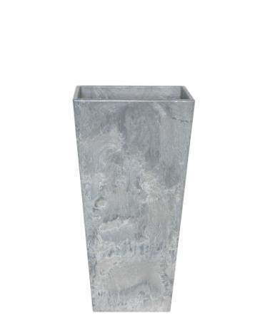 Vasen Artstone Ella har en lyxig marmorlook. Den här grå, fyrkantiga vasen är tillverkad av ett lättviktigt plastmaterial, som gör den enkel att flytta. Har alla egenskaper som behövs för att kunna användas utomhus, men passar också perfekt in i din interiör! Det unika med denna vas är dess dräneringssystem, som förhindrar att växterna står med rötterna vått för länge och gör det enklare för dig att ta hand om dina växter på rätt sätt. Vaserna från Artstone är återvinningsbara.