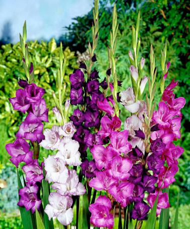 Kombinera gladiolerDe här vackra gladiolerna har extra stora blommor som är fulla av färg. Du kan skapa vackra kombinationer längs rabatten. Placera till exempel en grupp gladioler bredvid Zantedeschia och dahlior. De här slående blommorna är också utmärkta snittblommor.