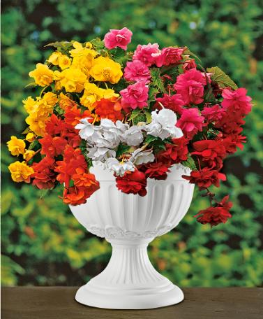 Hängbegonior är utmärkta som kombinations växter.Våra hängbegonior är ganska stora växter så de behöver plats. Men du kan skapa en egen kreation i en stor hängampel eller en stor kruka. Välj varianter som kompletterar varandra och utgör en vacker kontrast, både när det gäller blommornas färger och bladens form. Ett bra val torde vara hängfuchsior och engelsk murgröna.