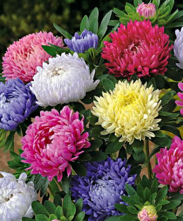 Sommaraster Mix (Callistephus chinensis) är en ettårig växt som blir mellan 60 till 70 cm hög och har sitt ursprung i Kina.